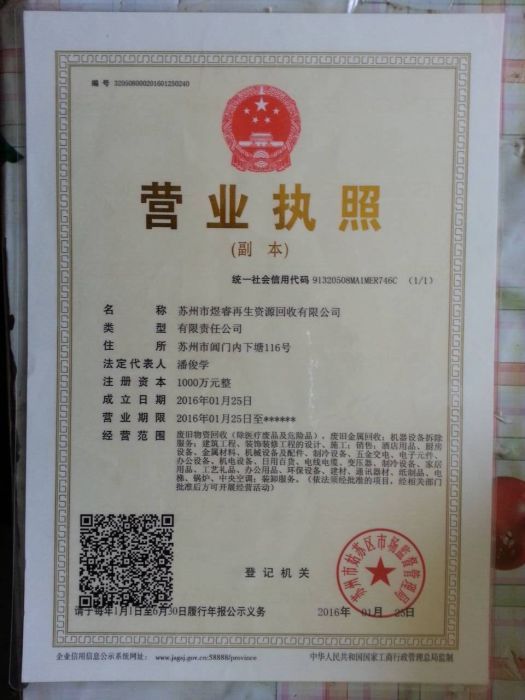- 苏州市煜睿再生资源回收有限公司