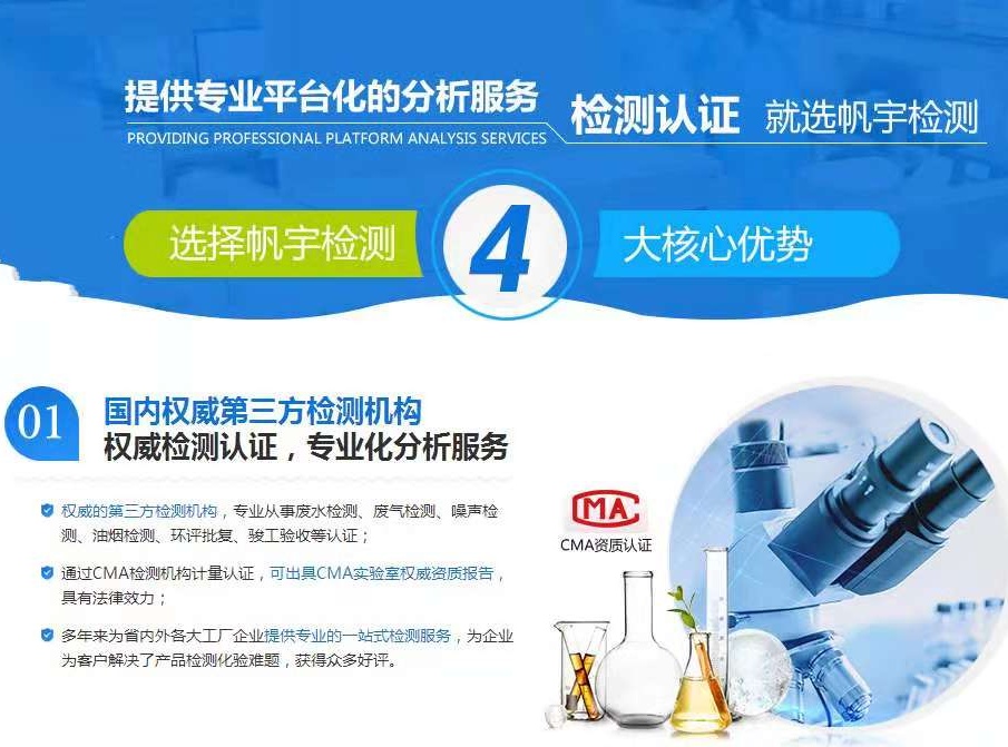深圳市帆宇检测是一家权威检测机构,专门从事工业品、消费品、矿产品检测等的第三方检测机构。主要服务项目有:钢材检测,金属检测,噪音检测,有害物质测试,水质检测,油品检测,成分分析,性能测试,矿产品化验,表面异物分析,营养成分检测,食品接触材料检测,电池检测,可靠性试验,纺织品检测,皮革检测等。公司有经验丰富的技术团队,为生产、科研、环保、化工、出口等部门提供专业分析检测服务。为省内外工厂企业的分析测试提供了有力的支撑并解决了大量关键技术难题,以专业的技术、问心无愧的服务,不同领域的技术团队合作,做出精益求精的精准,为企业为客户解决了产品检测化验的难题。欢迎各位新老顾客前来咨询合作查看更多| 所在地 | 广东/深圳/南山区 | 经营模式 | 商业服务 |
