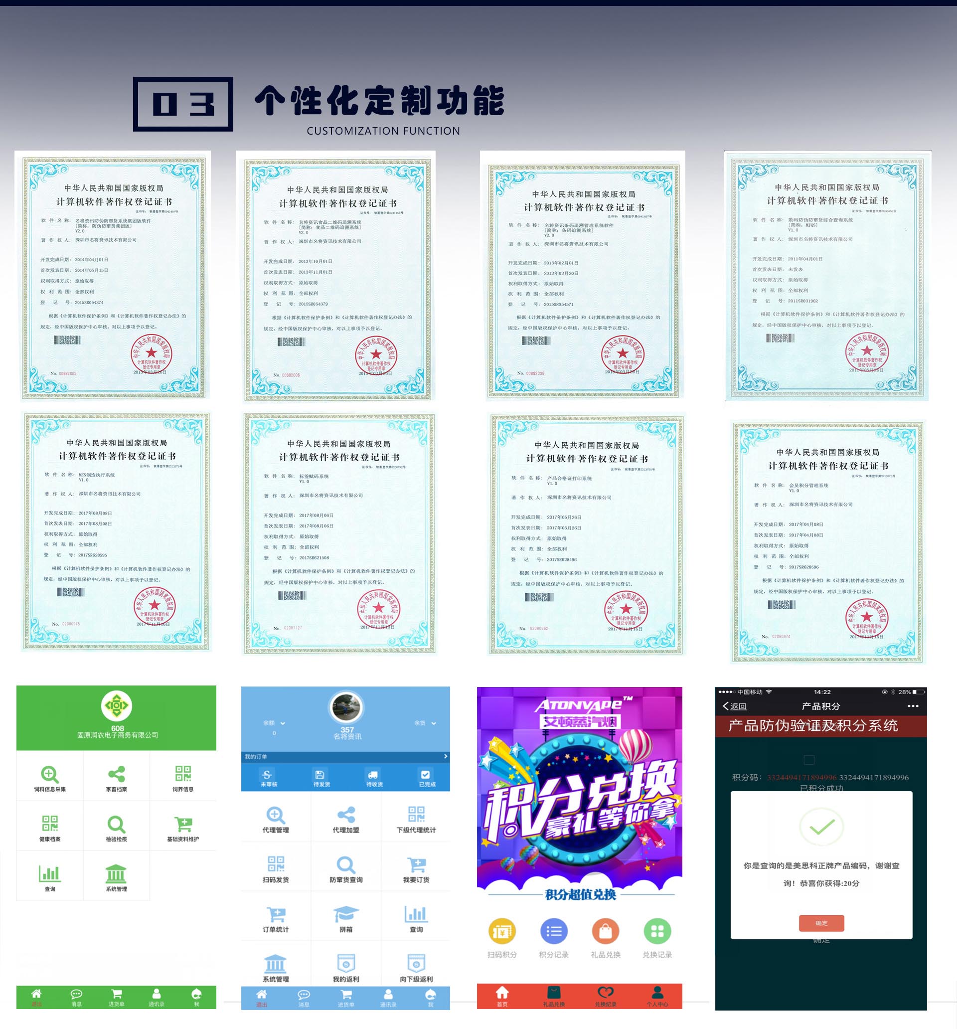 深圳市名将资讯技术有限公司是专业IT企业,是产品防伪与溯源整体方案提供商;公司所开发的软件拥有完全的自主知识产权,具备完善的自主研发,销售和服务体系;我们有近十年的行业经验,专注于产品的数码防伪、防窜货、产品追溯,在新技术,新思想日新月异的今天,我们不断地自我提高,自我实现,始终站在技术的制高点,是一维条码、二维码、RFID的应用解决方案专家。